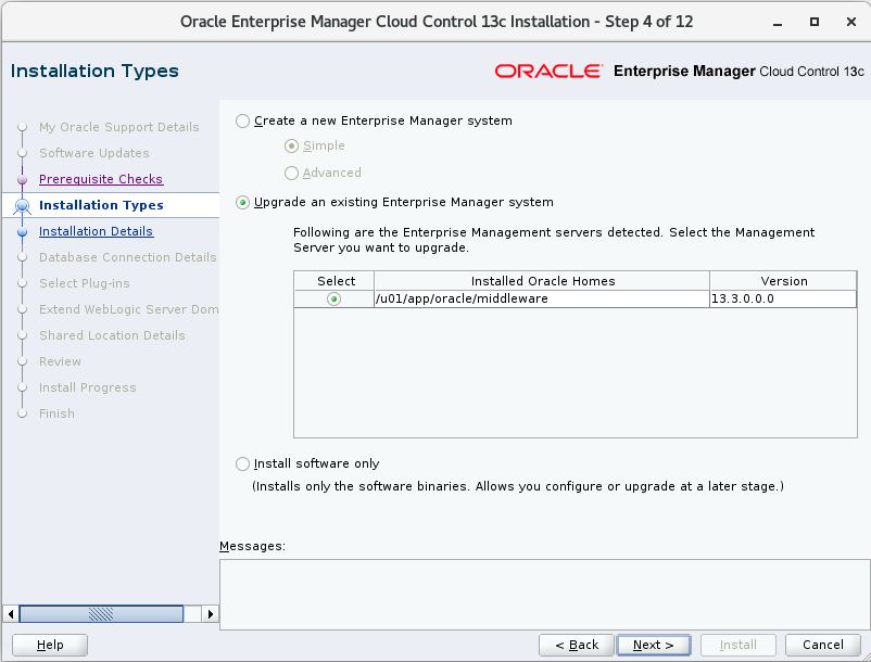 [oracle@oemserver sw]$ mkdir -p /u01/app/oracle/middleware_new [oracle@oemserver sw]$ cd oem_13.4/ -- where software has been download [oracle@oemserver oem_13.4]$ ls em13400_linux64-2.zip em13400_linux64-3.zip em13400_linux64-4.zip em13400_linux64-5.zip em13400_linux64-6.zip em13400_linux64-7.zip em13400_linux64.bin [oracle@oemserver oem_13.4]$ chmod u+x em13400_linux64.bin [oracle@oemserver oem_13.4]$ ./em13400_linux64.bin